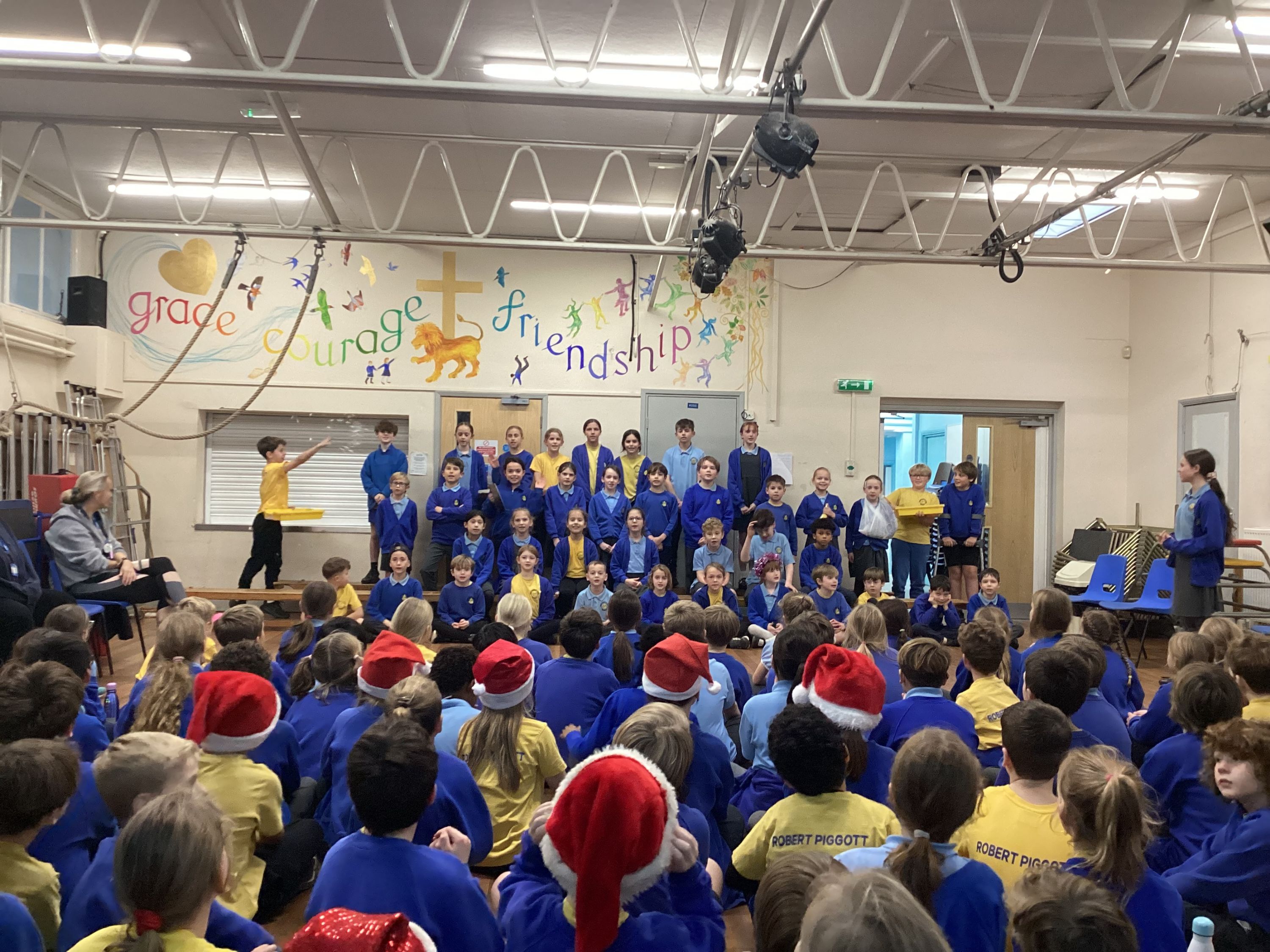 On Monday 15th December, the whole Junior School gathered to compete in our traditional Inter-House Carol Competition. The House Captains each organised 2 carols for their house and everyone rehearsed in readiness for the performance. The judges were very impressed and scored each team very highly. All the children were brilliant, and our house captains were wonderful at leading their houses to ensure a fun afternoon was had by all.